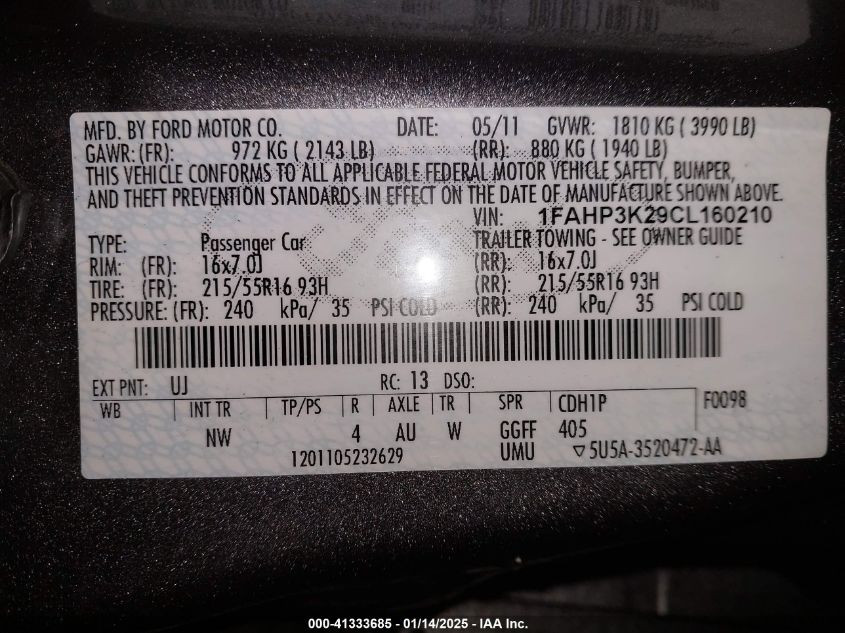 Color GrayCylinders 4Drive Front wheel driveVIN 1FAHP3K29CL******State Run & Drive VerifiedDamage Vandalism AutoRIA