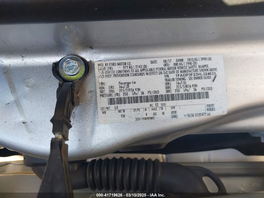 Color SilverCylinders 4Drive Front wheel driveVIN 1FADP3F23HL******State Run & Drive VerifiedDamage Front or back AutoRIA