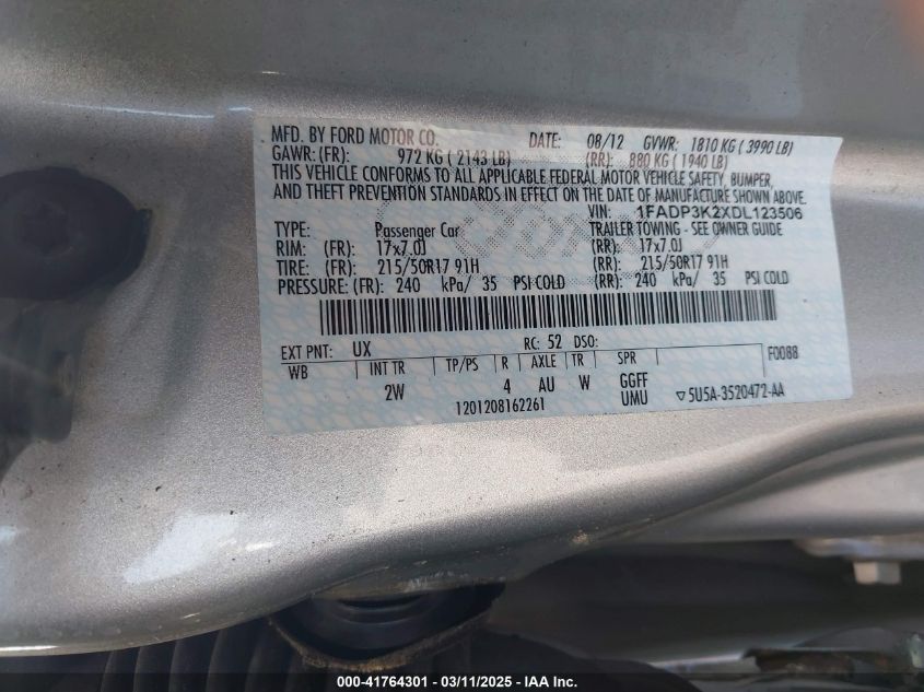 Color SilverCylinders 4Drive Front wheel driveVIN 1FADP3K2XDL******State Run & Drive VerifiedDamage Front and back AutoRIA