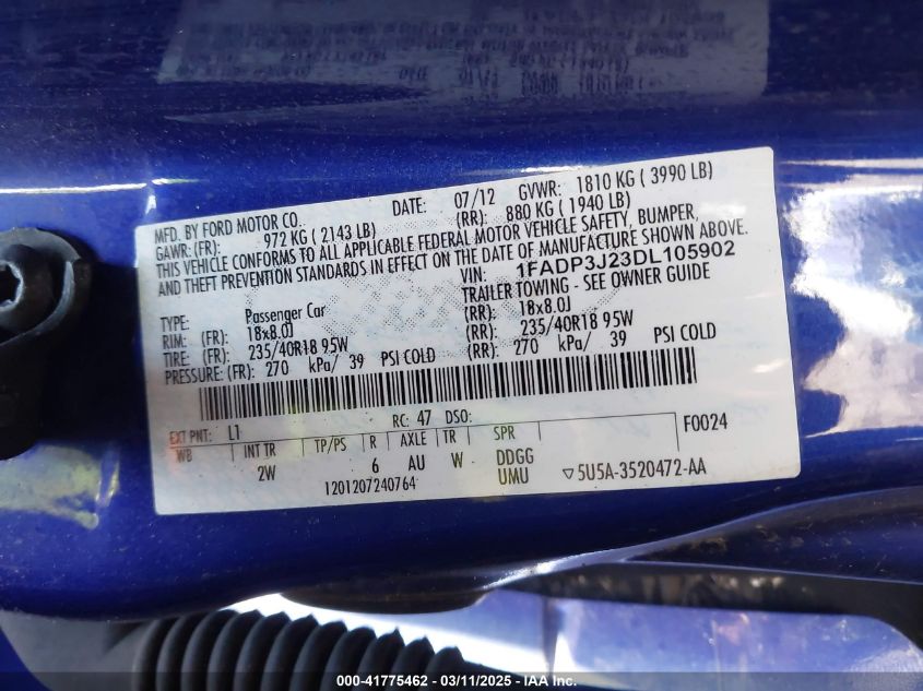 Color BlueCylinders 4Drive Front wheel driveVIN 1FADP3J23DL******State Run & Drive VerifiedDamage Rear left AutoRIA