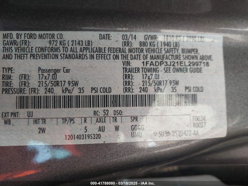 2014 FORD FOCUS 2014 Gasoline, 2.0, Front wheel drive, VIN - 1FADP3J21EL****** from the USA