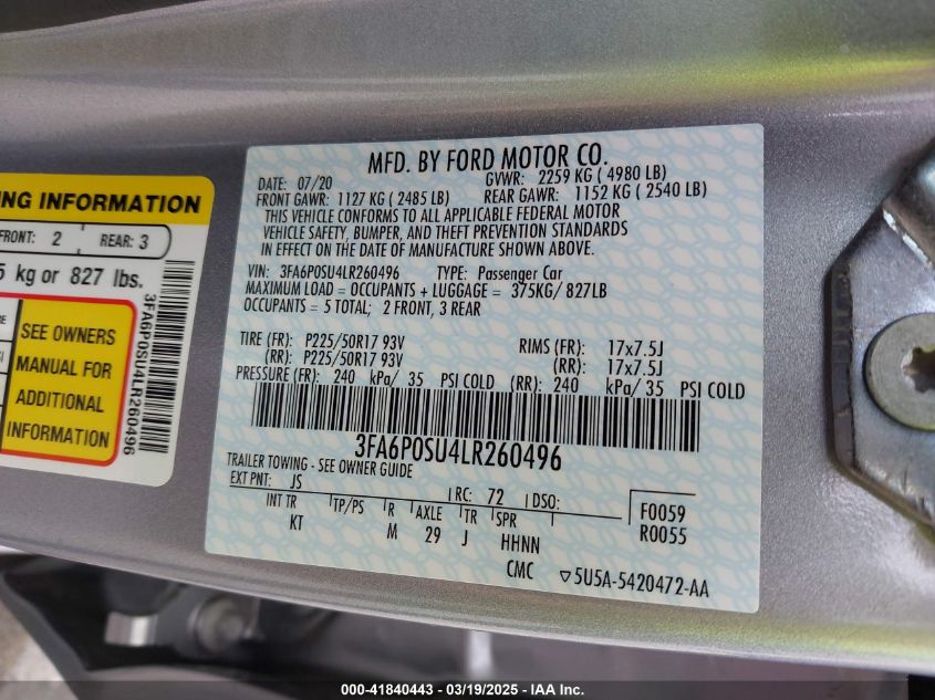 2020 FORD FUSION HYBRID 2020 Hybrid, 2.0, Front wheel drive, VIN - 3FA6P0SU4LR****** from the USA