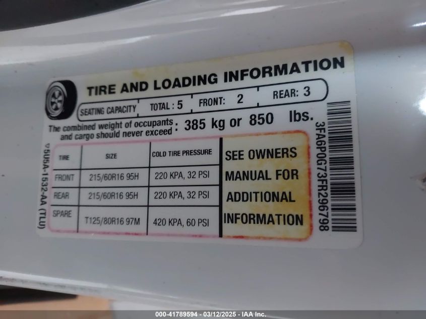 Color WhiteCylinders 4Drive Front wheel driveVIN 3FA6P0G73FR******State Run & Drive VerifiedDamage From the sides AutoRIA