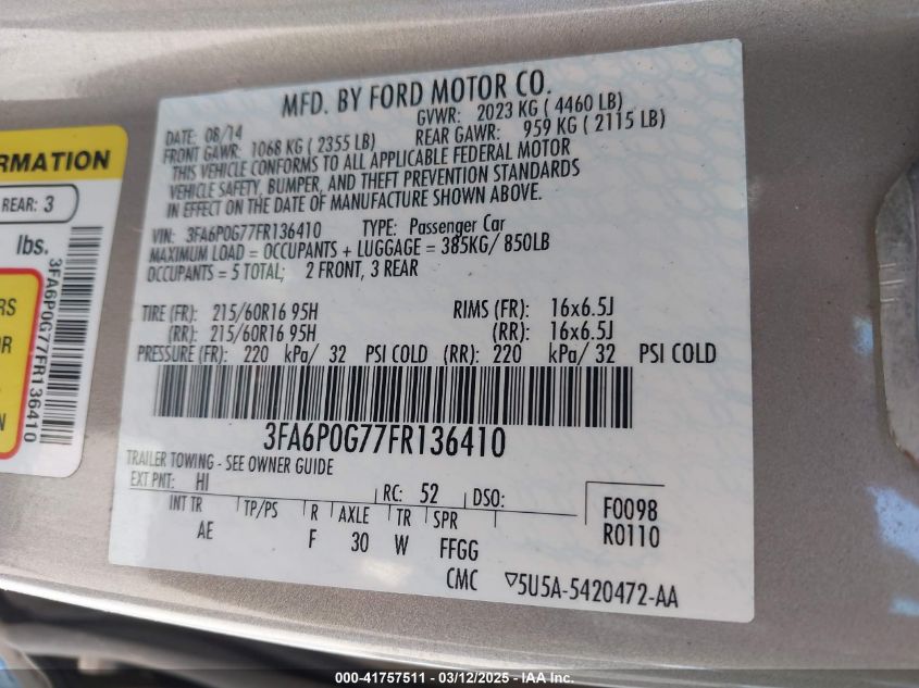 Color SunburnCylinders 4Drive Front wheel driveVIN 3FA6P0G77FR******State Run & Drive VerifiedDamage Front left AutoRIA