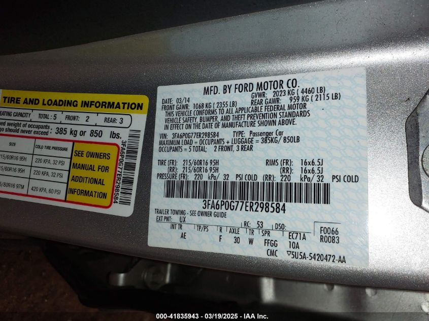 2014 FORD FUSION 2014 Gasoline, 2.5, Front wheel drive, VIN - 3FA6P0G77ER****** from the USA