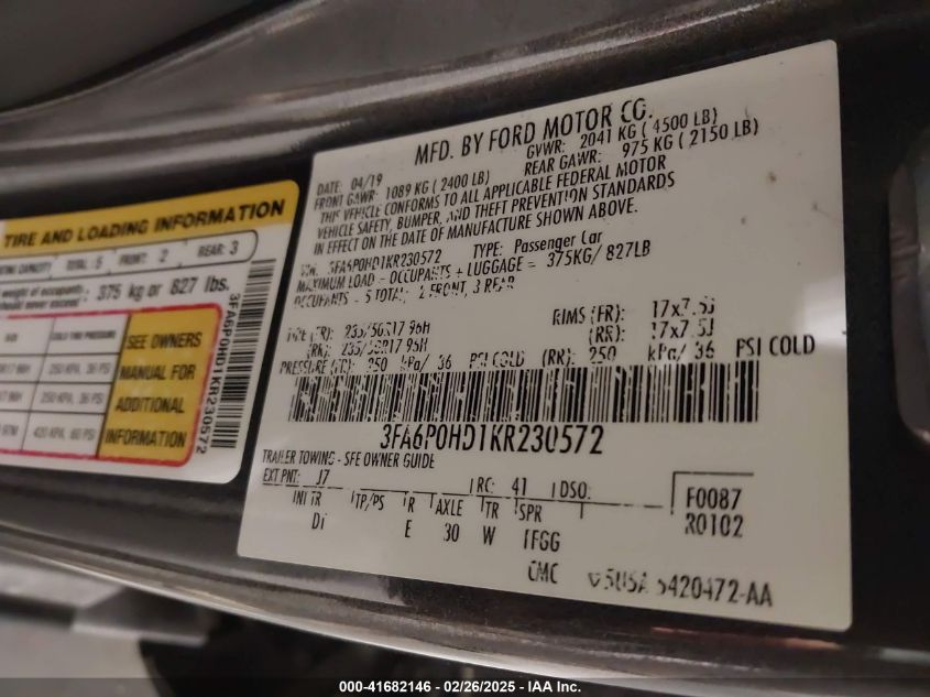 2019 FORD FUSION 2019 Gasoline, 1.5, Front wheel drive, VIN - 3FA6P0HD1KR****** from the USA