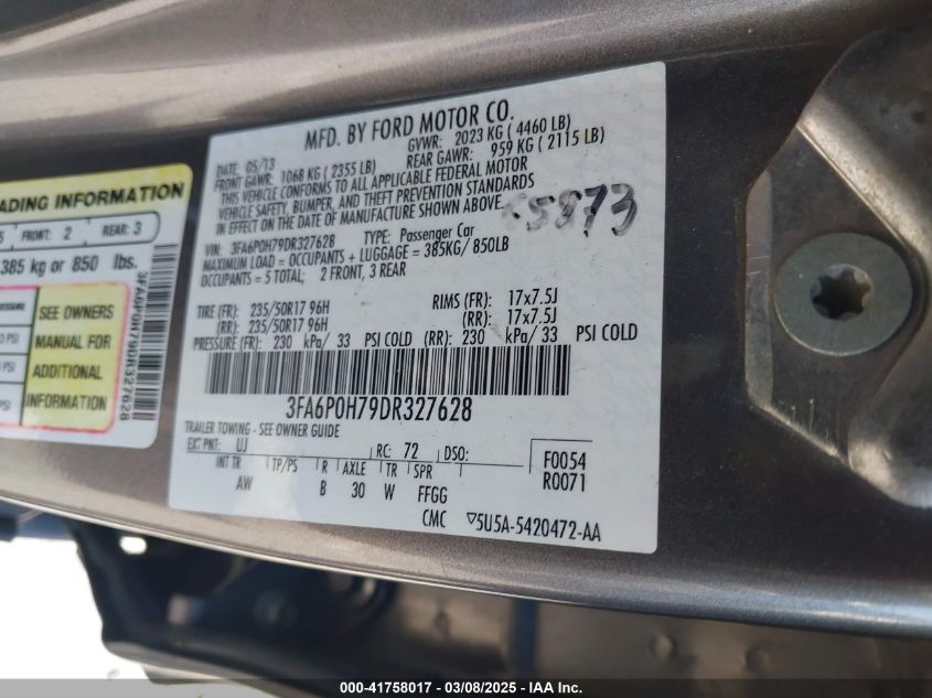 Color GrayCylinders 4Drive Front wheel driveVIN 3FA6P0H79DR******State Run & Drive VerifiedDamage InsignificantAuction date 2025-03-20 AutoRIA