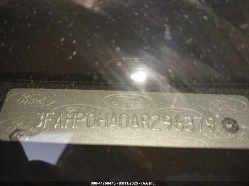 Color BlackCylinders 4Drive Front wheel driveVIN 3FAHP0HA0AR******State Run & Drive VerifiedDamage Front and backAuction date 2025-03-24 AutoRIA