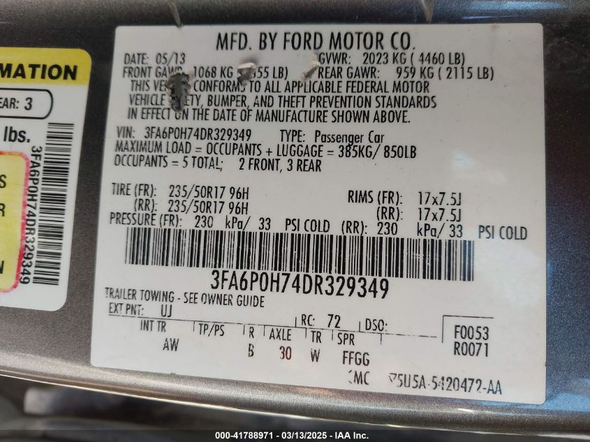 Color GrayCylinders 4Drive Front wheel driveVIN 3FA6P0H74DR******State Run & Drive VerifiedDamage From the sides AutoRIA