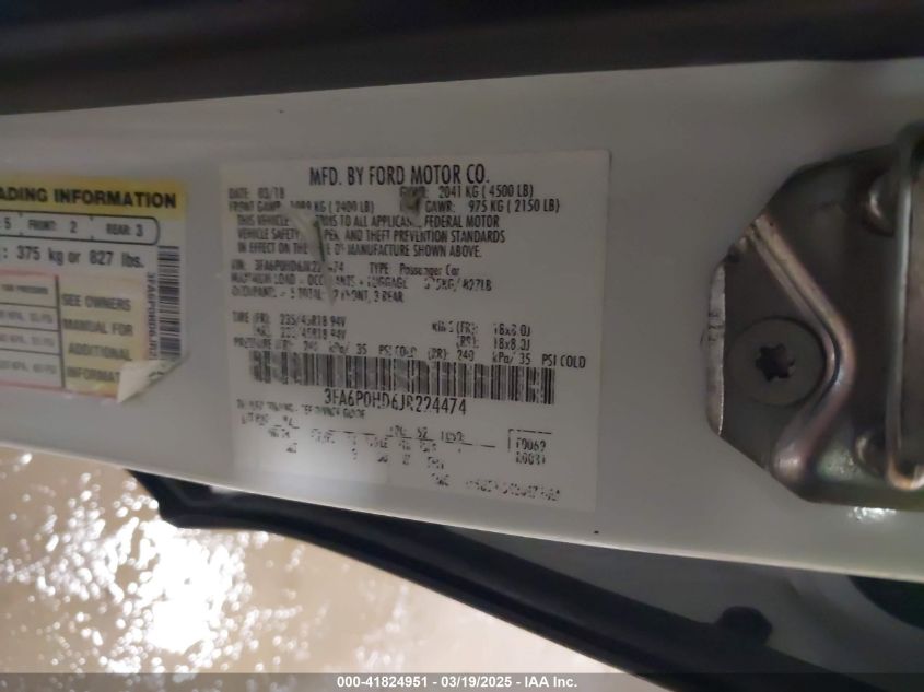 Color WhiteCylinders 4Drive Front wheel driveVIN 3FA6P0HD6JR******State Run & Drive VerifiedDamage Back AutoRIA