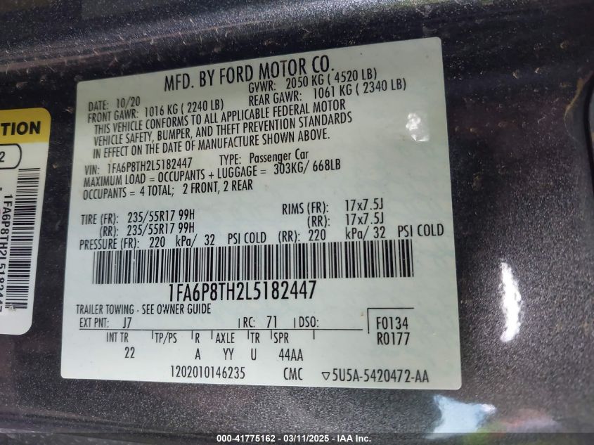 2020 FORD MUSTANG 2020 Gasoline, 2.3, Rear wheel drive, VIN - 1FA6P8TH2L5****** from the USA