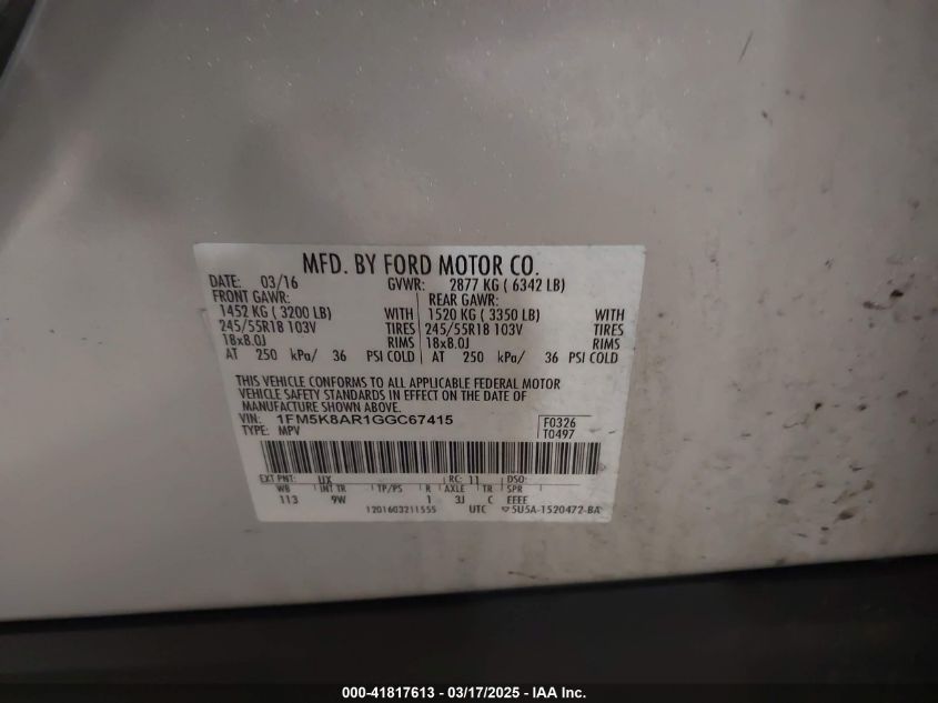 Color SilverCylinders 6Drive Full driveVIN 1FM5K8AR1GG******State Run & Drive VerifiedDamage Front leftAuction date 2025-03-26