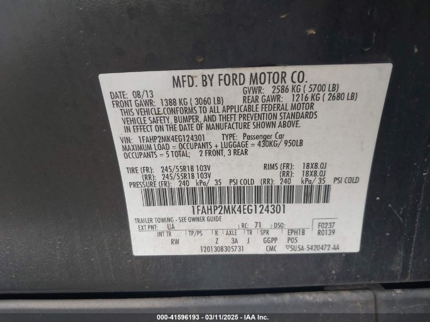 Color BlackCylinders 6Drive Full driveVIN 1FAHP2MK4EG******State Run & Drive VerifiedDamage Right side