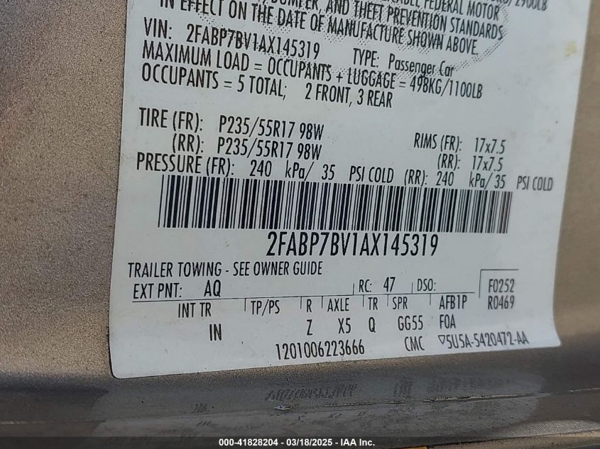 Color BrownCylinders 8Drive Rear wheel driveVIN 2FABP7BV1AX******State Run & Drive VerifiedDamage Front and back