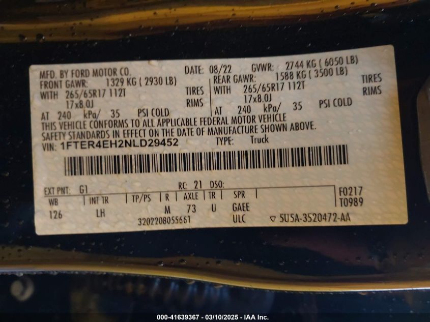 2022 FORD RANGER 2022 Gasoline, 2.3, Unknown, VIN - 1FTER4EH2NL****** from the USA