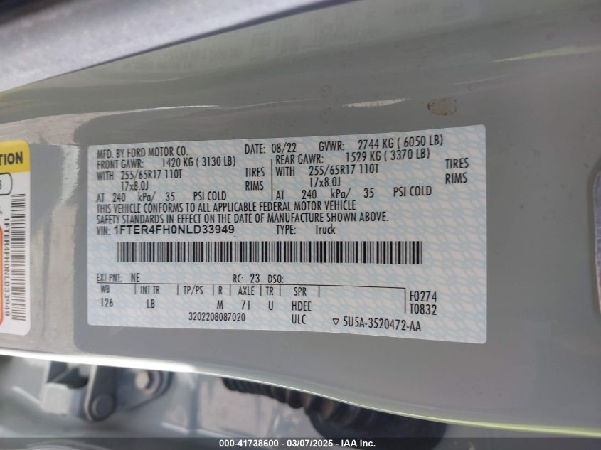 2022 FORD RANGER 2022 Gasoline, 2.3, Full drive, VIN - 1FTER4FH0NL****** from the USA