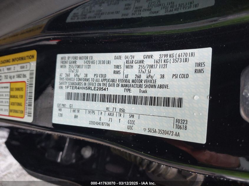 2024 FORD RANGER 2024 Gasoline, 2.3, Full drive, VIN - 1FTER4HH5RL****** from the USA