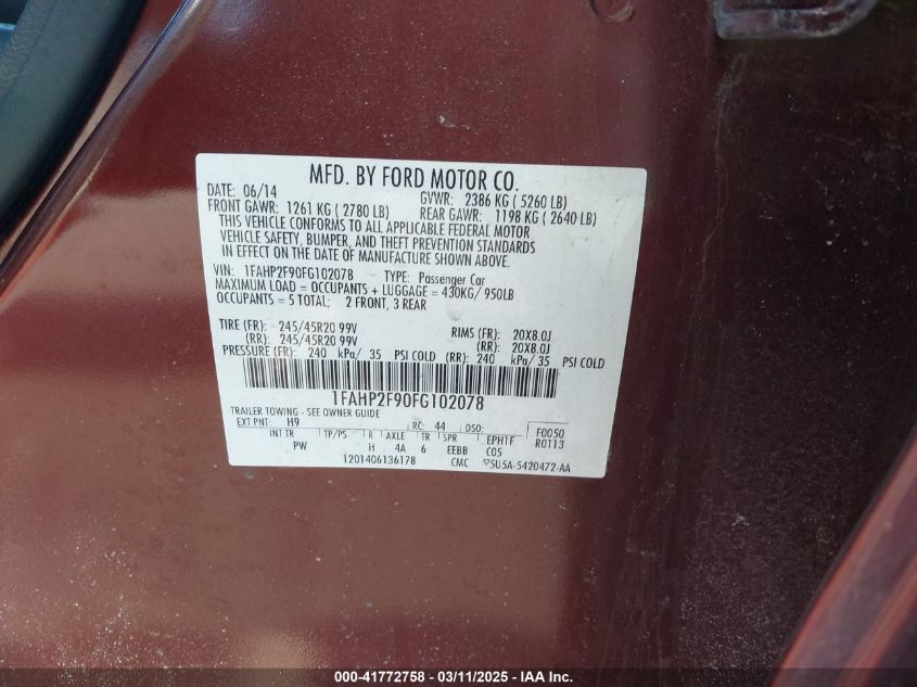 2015 FORD TAURUS 2015 Gasoline, 2.0, Front wheel drive, VIN - 1FAHP2F90FG****** from the USA