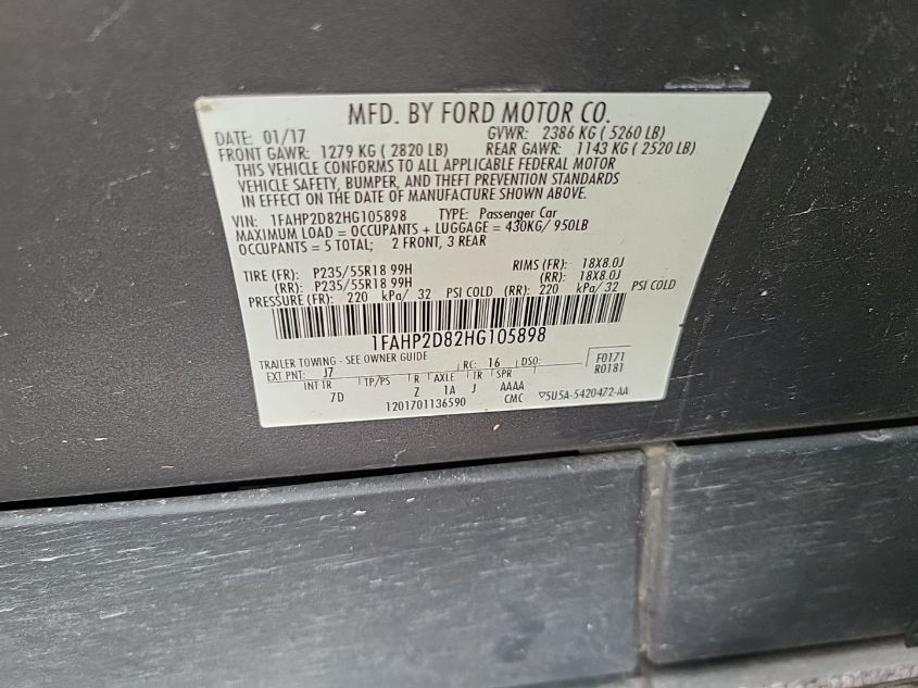 2017 FORD TAURUS 2017 Gasoline, 3.5, Front wheel drive, VIN - 1FAHP2D82HG****** from the USA