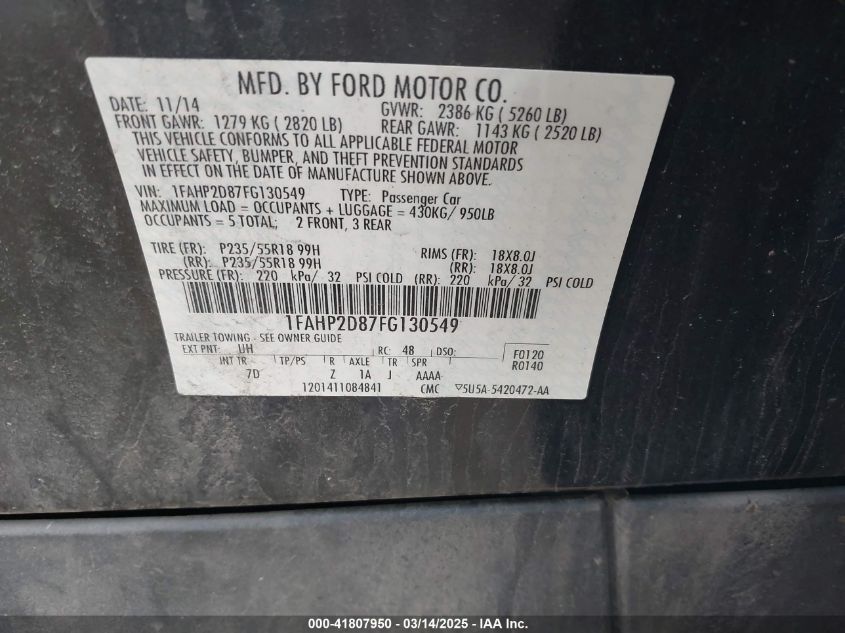 2015 FORD TAURUS 2015 Gasoline, 3.5, Front wheel drive, VIN - 1FAHP2D87FG****** from the USA