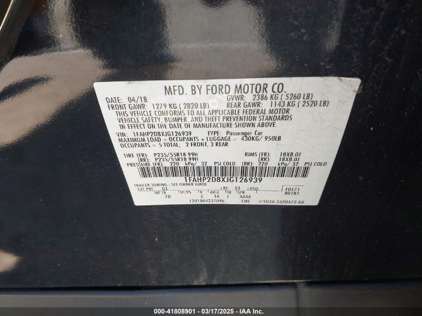 Color BlackCylinders 6Drive Front wheel driveVIN 1FAHP2D8XJG******State Run & Drive VerifiedDamage Front or back AutoRIA