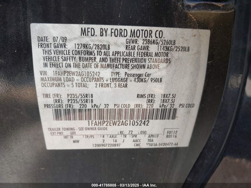 2010 FORD TAURUS 2010 Gasoline, 3.5, Front wheel drive, VIN - 1FAHP2EW2AG****** from the USA