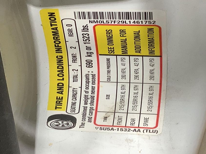 Color Cylinders 4Drive Front wheel driveVIN NM0LS7F29L1******State Run & Drive VerifiedDamage InsignificantAuction date 2025-06-01 AutoRIA