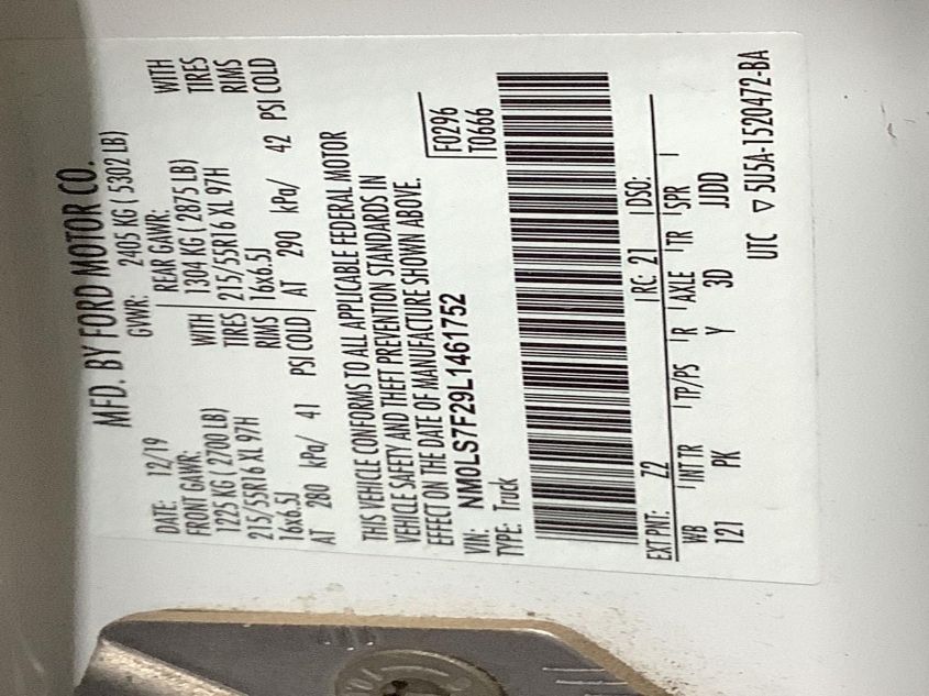 2020 FORD TRANSIT CONNECT 2020 Gasoline, 2.0, Front wheel drive, VIN - NM0LS7F29L1****** from the USA