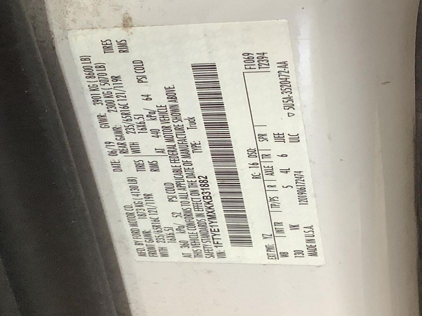 Color Cylinders 6Drive Rear wheel driveVIN 1FTYE1YMXKK******State Run & Drive VerifiedDamage InsignificantAuction date 2025-06-01