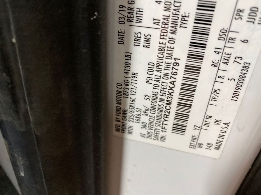 Color WhiteCylinders 6Drive Rear wheel driveVIN 1FTYR2CM3KK******State Run & Drive VerifiedDamage InsignificantAuction date 2025-06-01