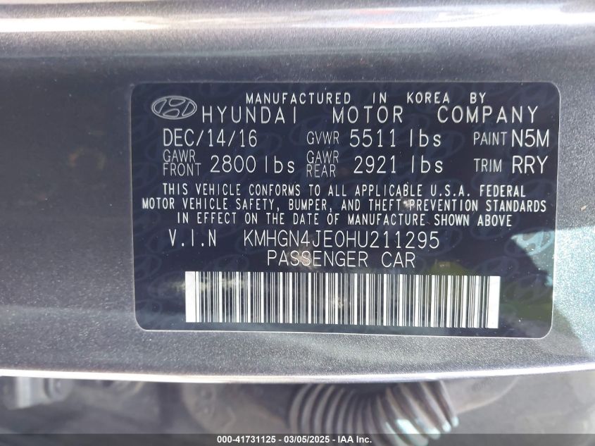Color GrayCylinders 6Drive Full driveVIN KMHGN4JE0HU******State Run & Drive VerifiedDamage Front or backAuction date 2025-03-20 AutoRIA
