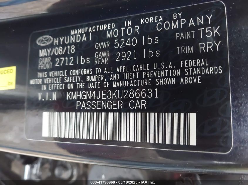 2019 GENESIS G80 2019 Gasoline, 3.8, Rear wheel drive, VIN - KMHGN4JE3KU****** from the USA