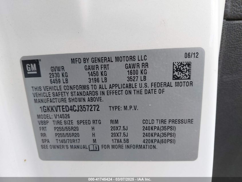 2012 GMC ACADIA 2012 Gasoline, 3.6, Full drive, VIN - 1GKKVTED4CJ****** from the USA