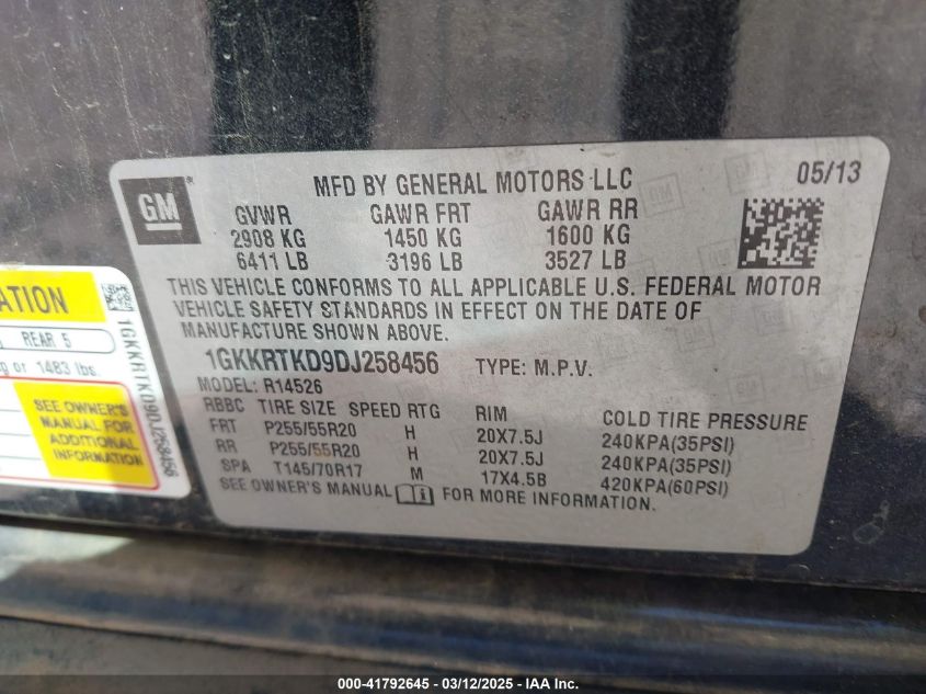 Color BlackCylinders 6Drive Front wheel driveVIN 1GKKRTKD9DJ******State Run & Drive VerifiedDamage Engine fireAuction date 2025-03-21 AutoRIA