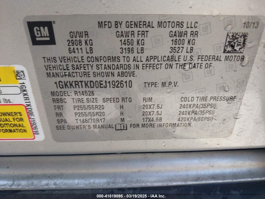 Color SilverCylinders 6Drive Front wheel driveVIN 1GKKRTKD0EJ******State Run & Drive VerifiedDamage Insignificant AutoRIA