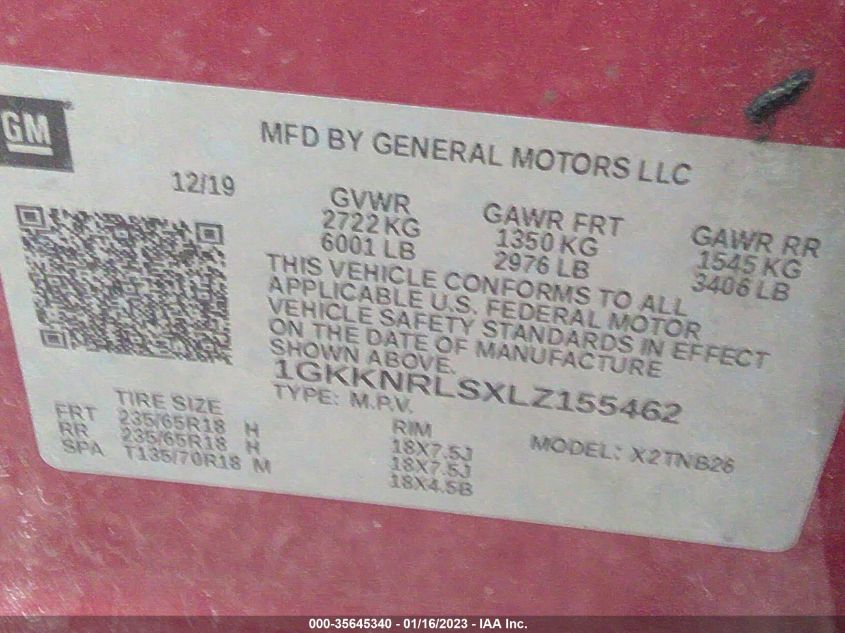 Color BurgundyCylinders 6Drive Full driveVIN 1GKKNRLSXLZ******State Run & Drive VerifiedDamage Left side AutoRIA