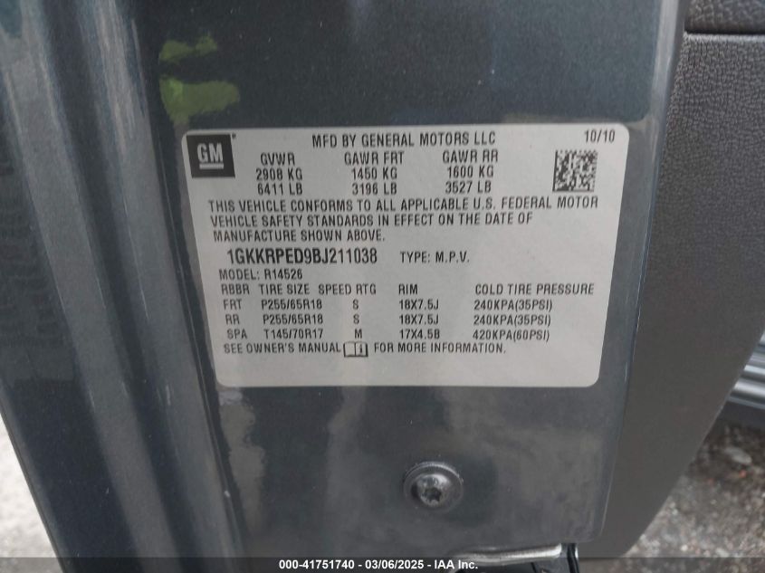 Color GrayCylinders 6Drive Front wheel driveVIN 1GKKRPED9BJ******State Run & Drive VerifiedDamage Right sideAuction date 2025-03-20