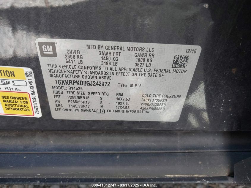 Color GrayCylinders 6Drive Front wheel driveVIN 1GKKRPKD8GJ******State Run & Drive VerifiedDamage From the sides AutoRIA