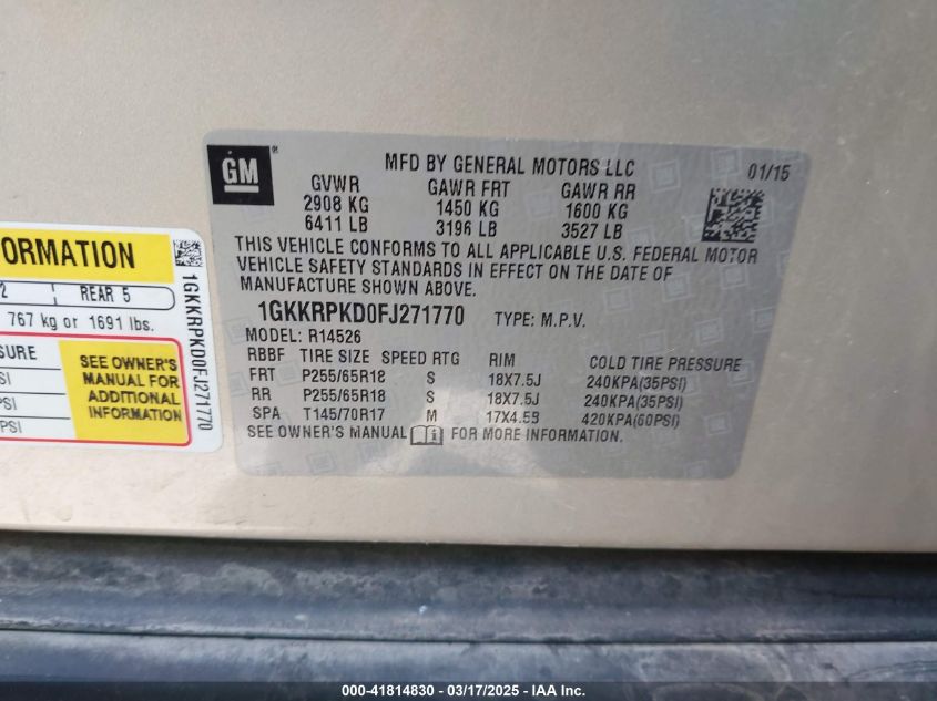 Color BeigeCylinders 6Drive Front wheel driveVIN 1GKKRPKD0FJ******State Run & Drive VerifiedDamage Back AutoRIA