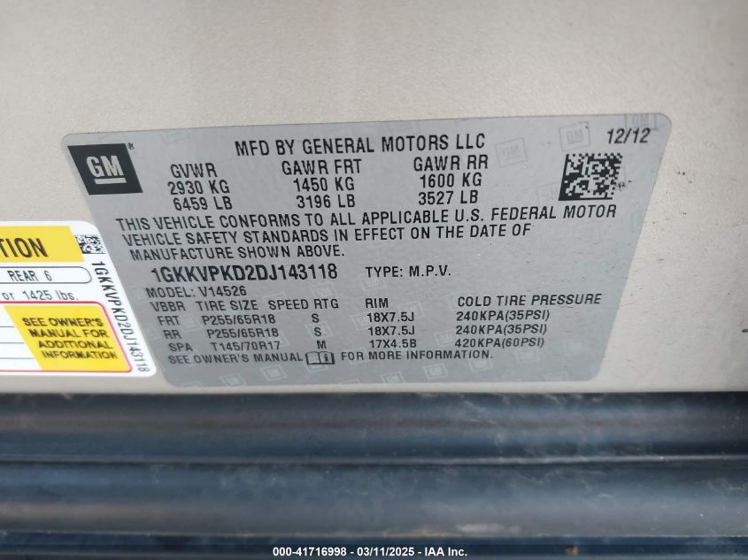 Color SunburnCylinders 6Drive Full driveVIN 1GKKVPKD2DJ******State Run & Drive VerifiedDamage Right side AutoRIA