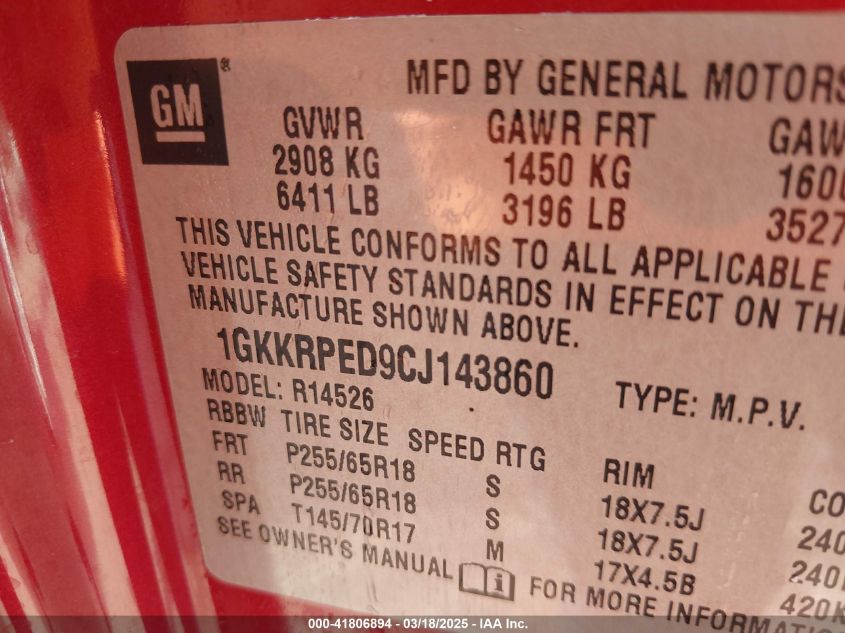 Color RedCylinders 6Drive Front wheel driveVIN 1GKKRPED9CJ******State Run & Drive VerifiedDamage Front right AutoRIA