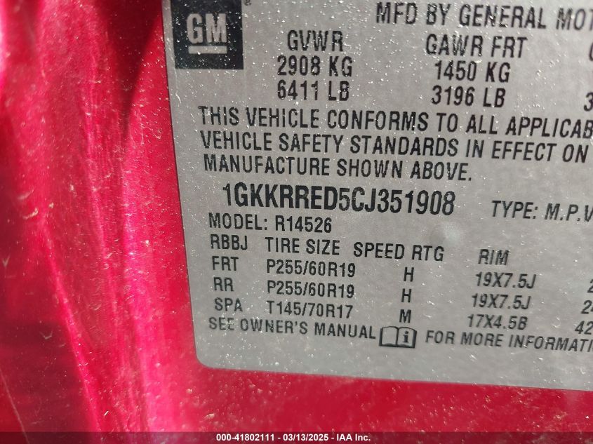 Color RedCylinders 6Drive Front wheel driveVIN 1GKKRRED5CJ******State Run & Drive VerifiedDamage Insignificant AutoRIA