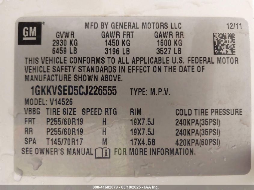 2012 GMC ACADIA 2012 Gasoline, 3.6, Full drive, VIN - 1GKKVSED5CJ****** from the USA