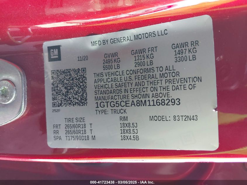 2021 GMC CANYON 2021 Gasoline, 2.5, Unknown, VIN - 1GTG5CEA8M1****** from the USA