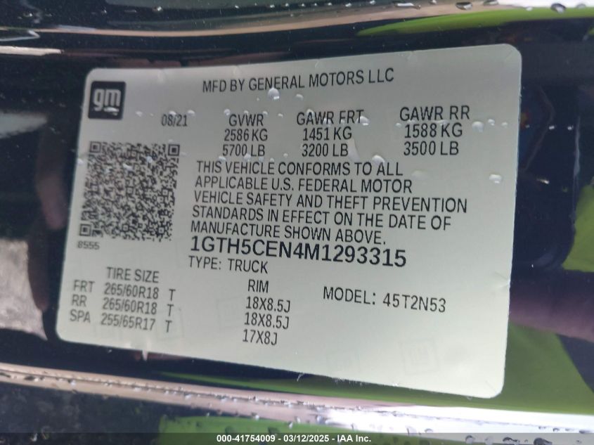 Color BlackCylinders 6Drive UnknownVIN 1GTH5CEN4M1******State Run & Drive VerifiedDamage Right side