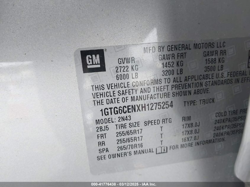 Color GrayCylinders 6Drive Full driveVIN 1GTG6CENXH1******State Run & Drive VerifiedDamage BackAuction date 2025-03-25