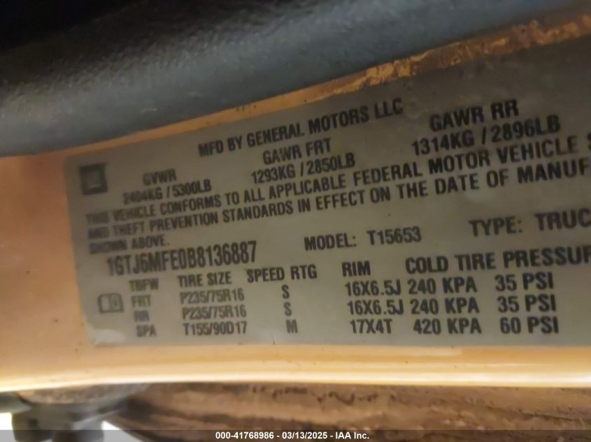 Color YellowCylinders 5Drive Full driveVIN 1GTJ6MFE0B8******State Run & Drive VerifiedDamage Fire