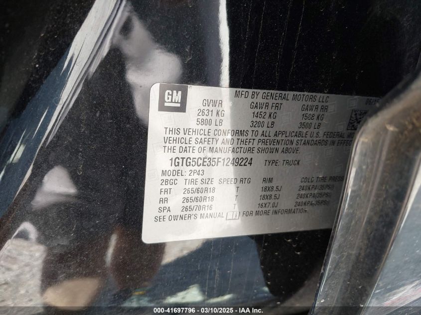 2015 GMC CANYON 2015 Gasoline, 3.6, Unknown, VIN - 1GTG5CE35F1****** from the USA