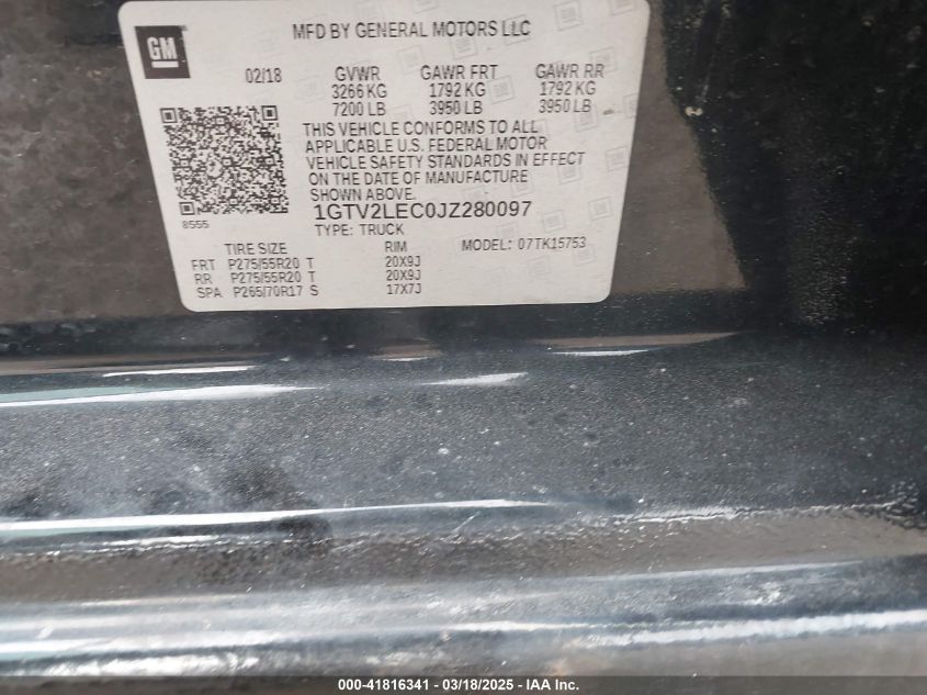 Color BlackCylinders 8Drive Full driveVIN 1GTV2LEC0JZ******State Run & Drive VerifiedDamage Front or back