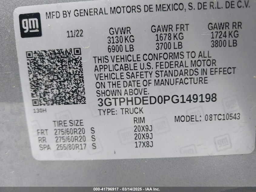 Color GrayCylinders 8Drive UnknownVIN 3GTPHDED0PG******State Run & Drive VerifiedDamage Left side